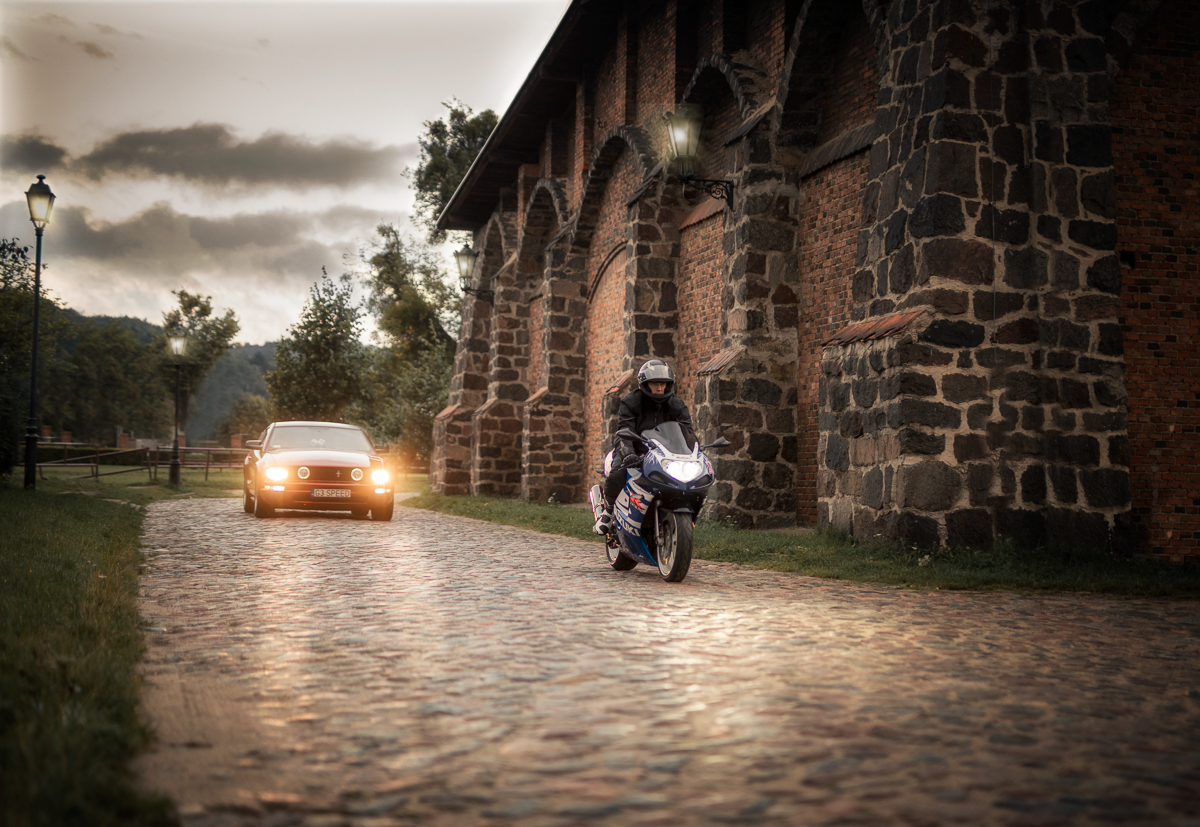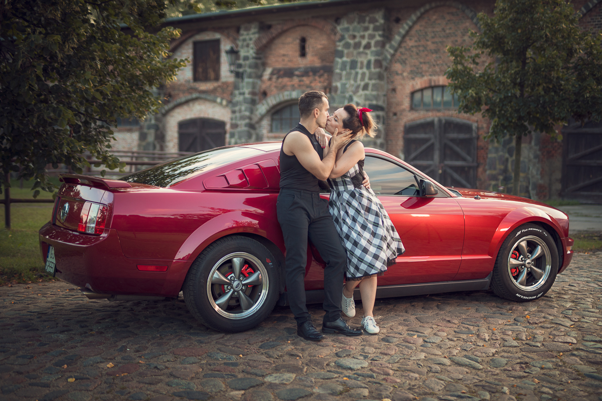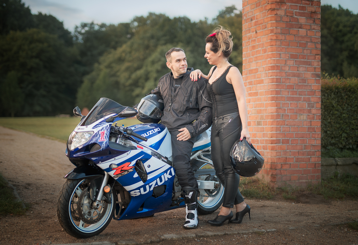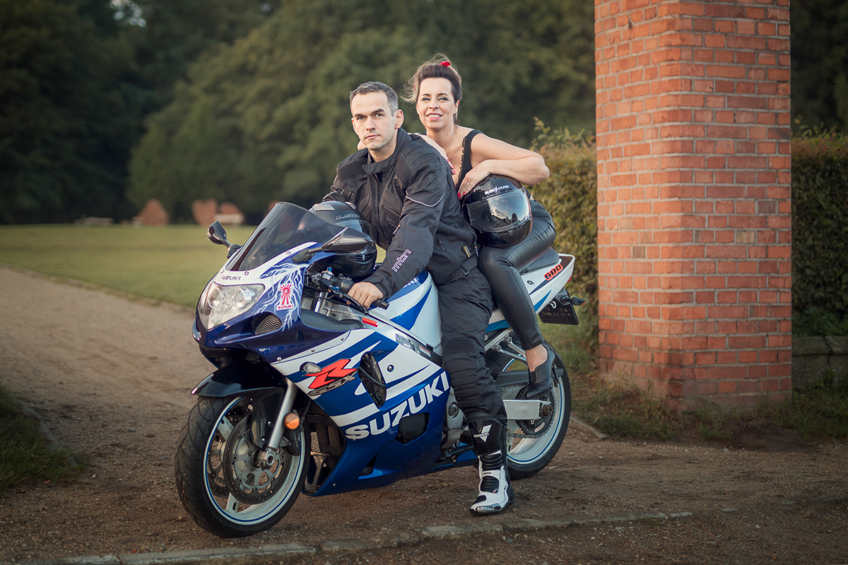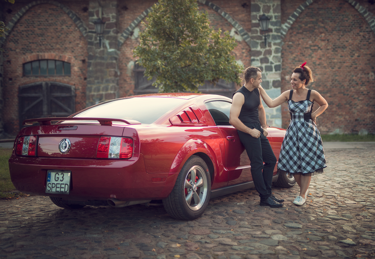 Agnieszka i Piotr marzyli o wspólnej sesji dla par. Ale wymarzyli sobie również, by na tych fotografiach pokazać dwie ogromne miłości Piotra (poza Agnieszką oczywiście) - motocykl i samochód. Wiedziałam o tym z kilku rozmów, jakie z nimi przeprowadziłam przed sesją. Aga zdradziła, że samochód to specjalnie szykowany na sesję piękny, czerwony Mustang a motocykl to ścigacz. Wiedziałam więc, że stylizacje trzeba będzie przygotować pod maszyny również, a także poszukać pleneru, który najlepiej podkreśli urodę samochodu, ale będzie również pasował do charakteru mojej Pary i spełniał ich oczekiwania. Padło na Kolibki w Gdyni, które stanowiły doskonałe tło zarówno dla Mustanga jak i motocykla. Umówiliśmy się tuż po wschodzie słońca. Lubię pracować w ciszy i pustej przestrzeni tak by modeli nic nie rozpraszało. Zależało mi, by pokazać te emocje, które są z Agą i Piotrem już od paru lat. Wyszło wspaniale, a para ma cudowną pamiątkę.