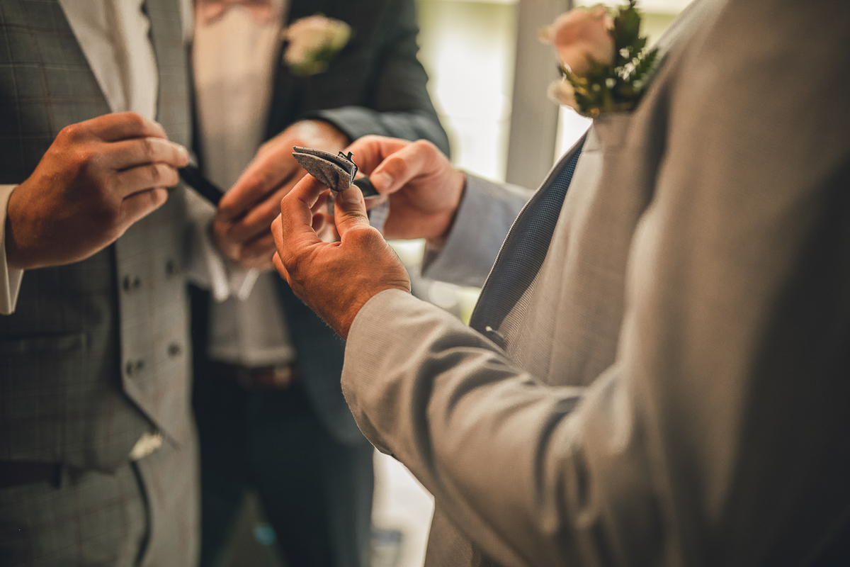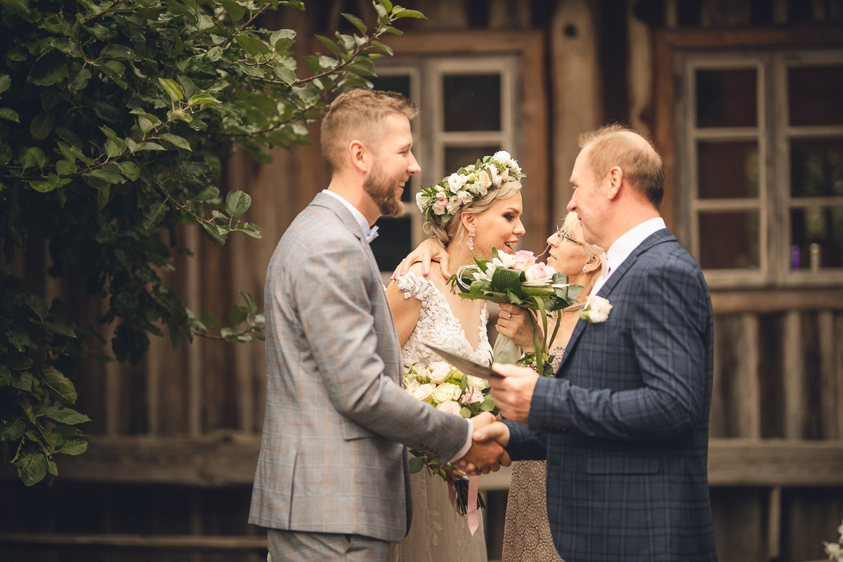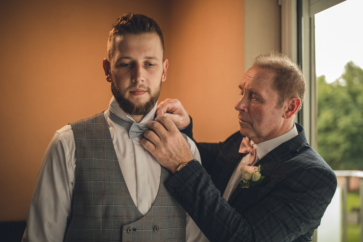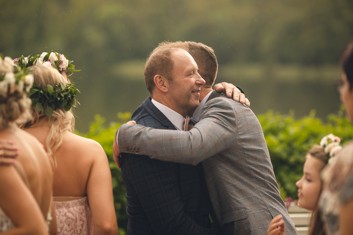 Emocje sięgały zenitu, gdy Tato Pana Młodego poprawiał mu muszkę na koszuli...