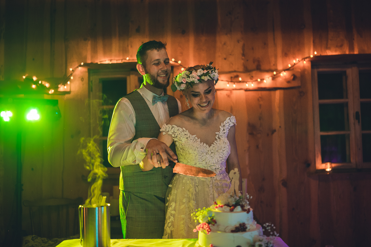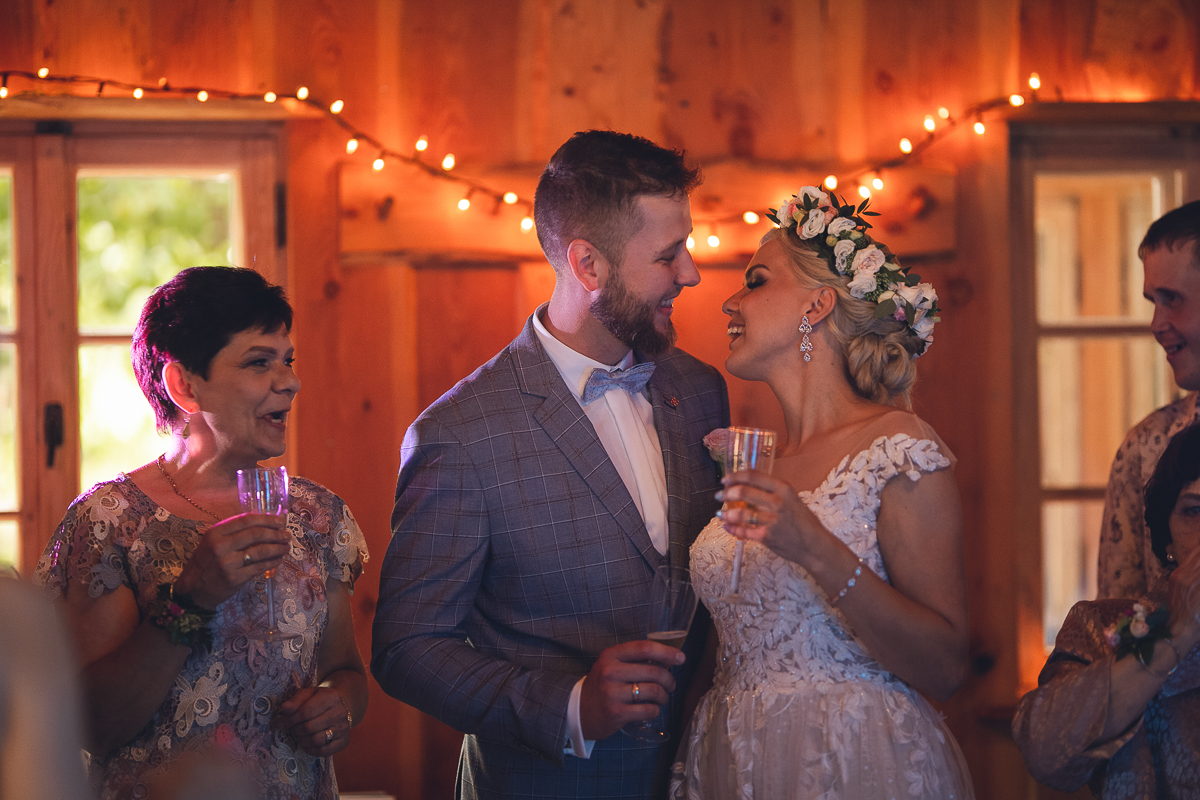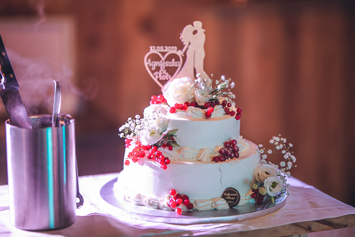 Po pierwszym tańcu porwaliśmy Państwa Młodych na króciutki plener, po którym przyszedł czas na toasty i Tort.