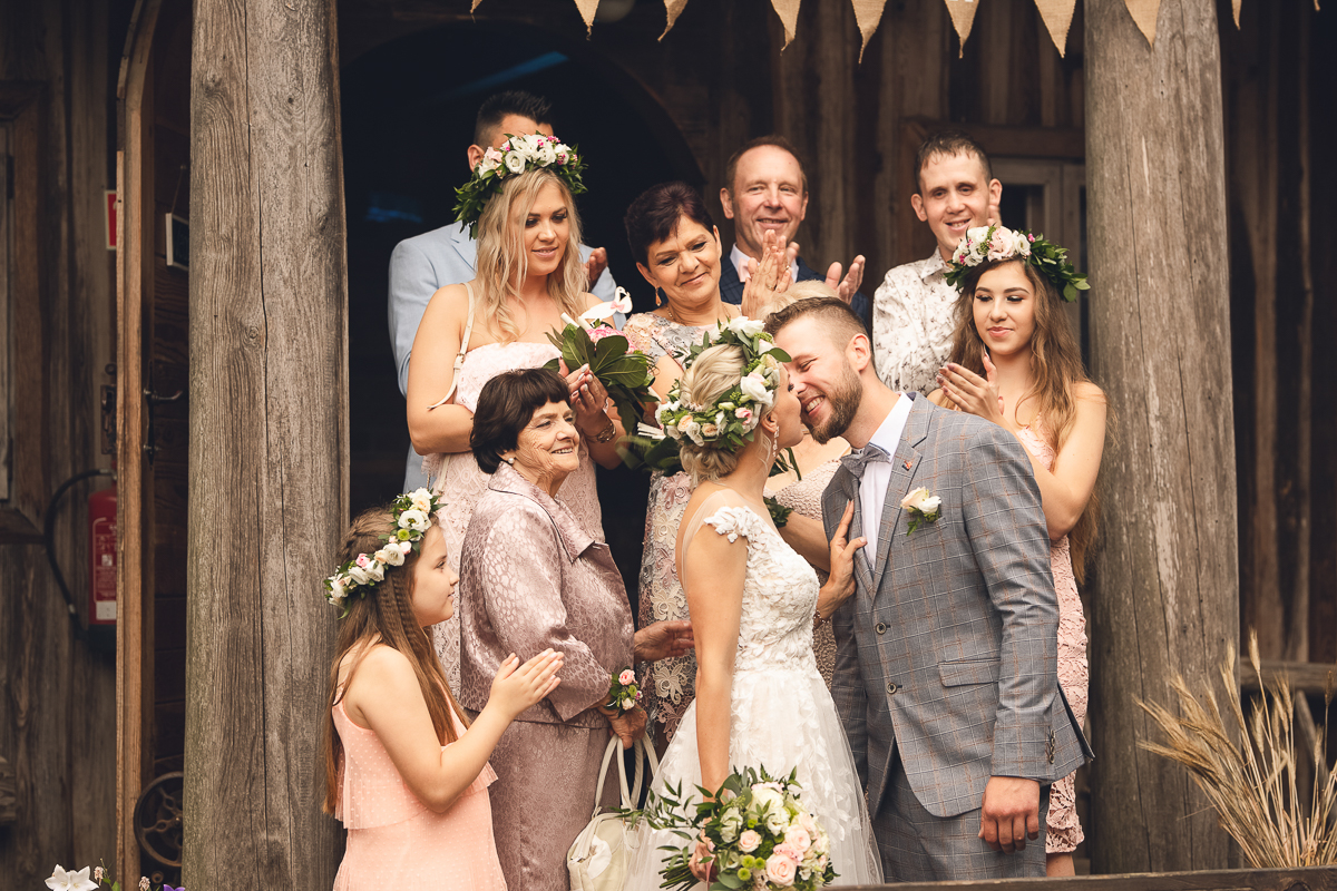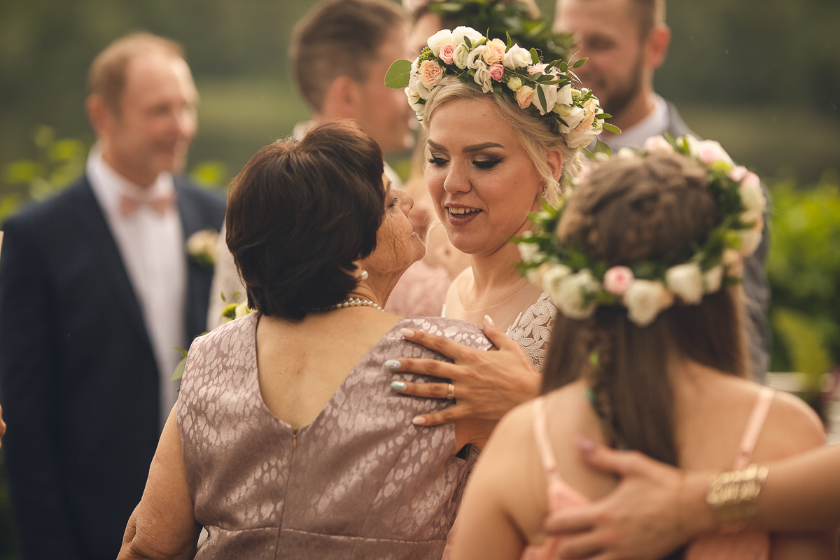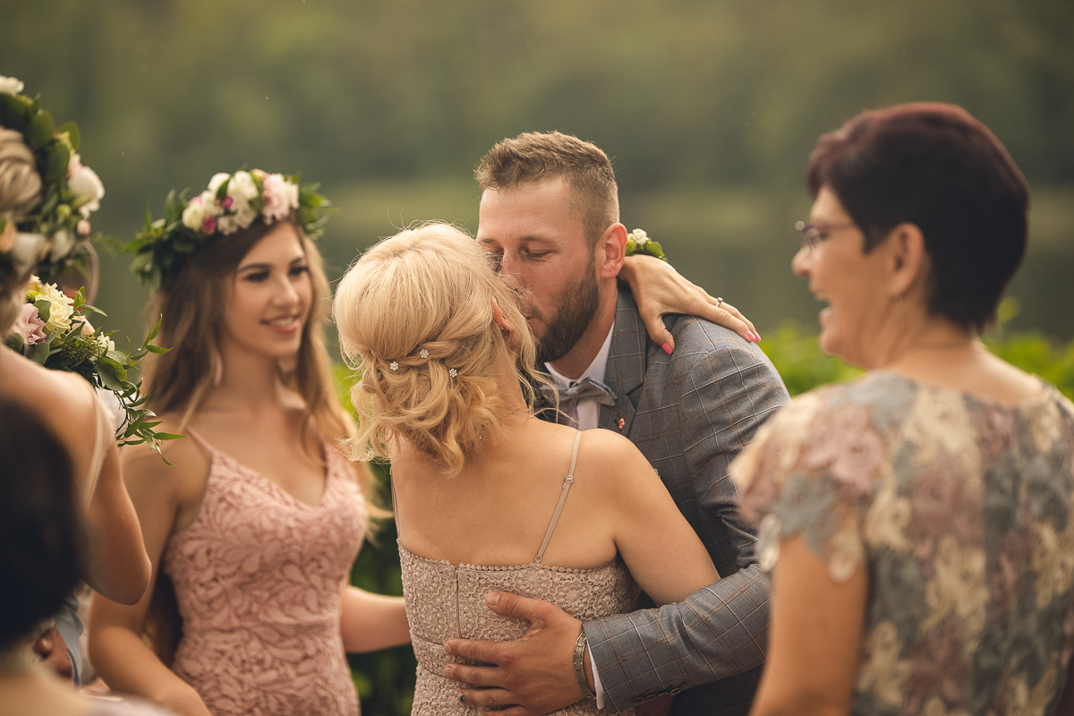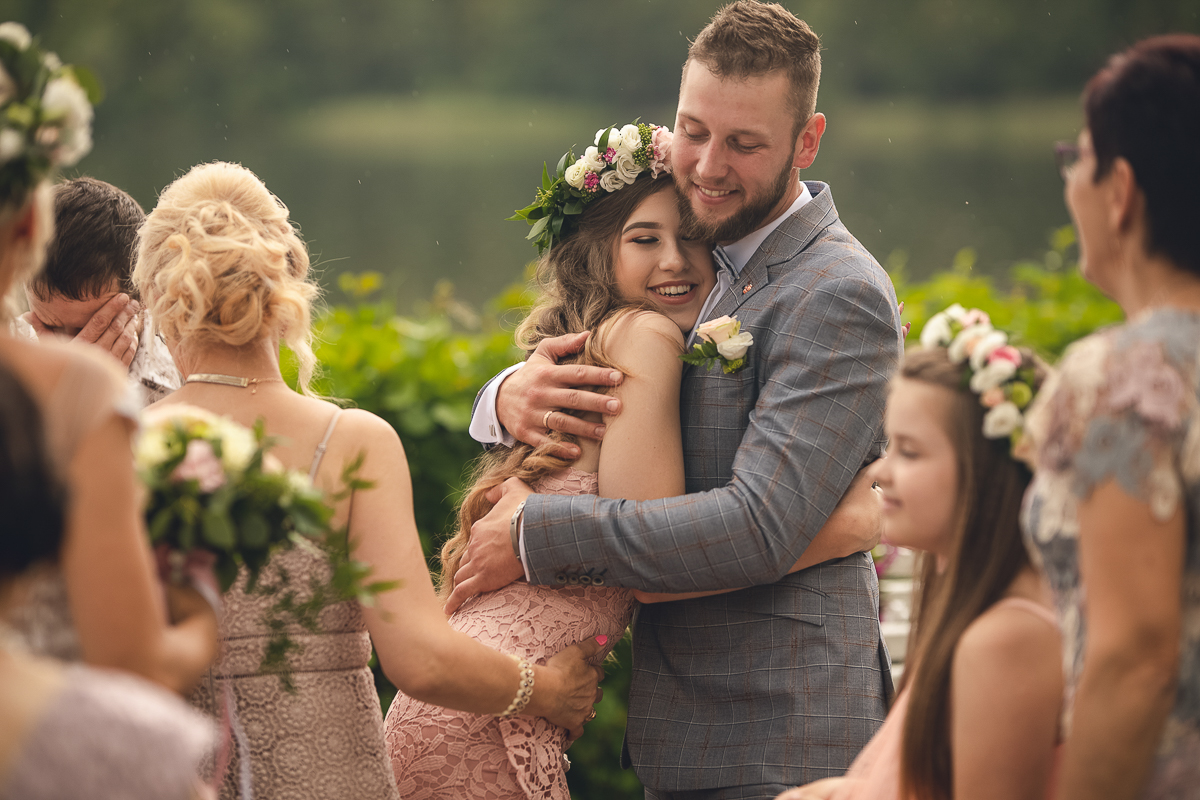 Emocje były niezwykłe, jak niezwykłe było otoczenie, pomimo deszczu, który zaczął padać, serca wszystkich były gorące, atmosfera niezwykle piękna, uroczysta, wszyscy mieli przed oczami Państwa Młodych, a my ten zaszczyt - uchwycenia tych najcudowniejszych momentów, łez wzruszenia, pierwszego pocałunku.