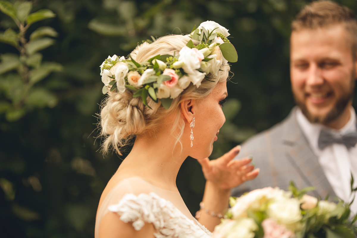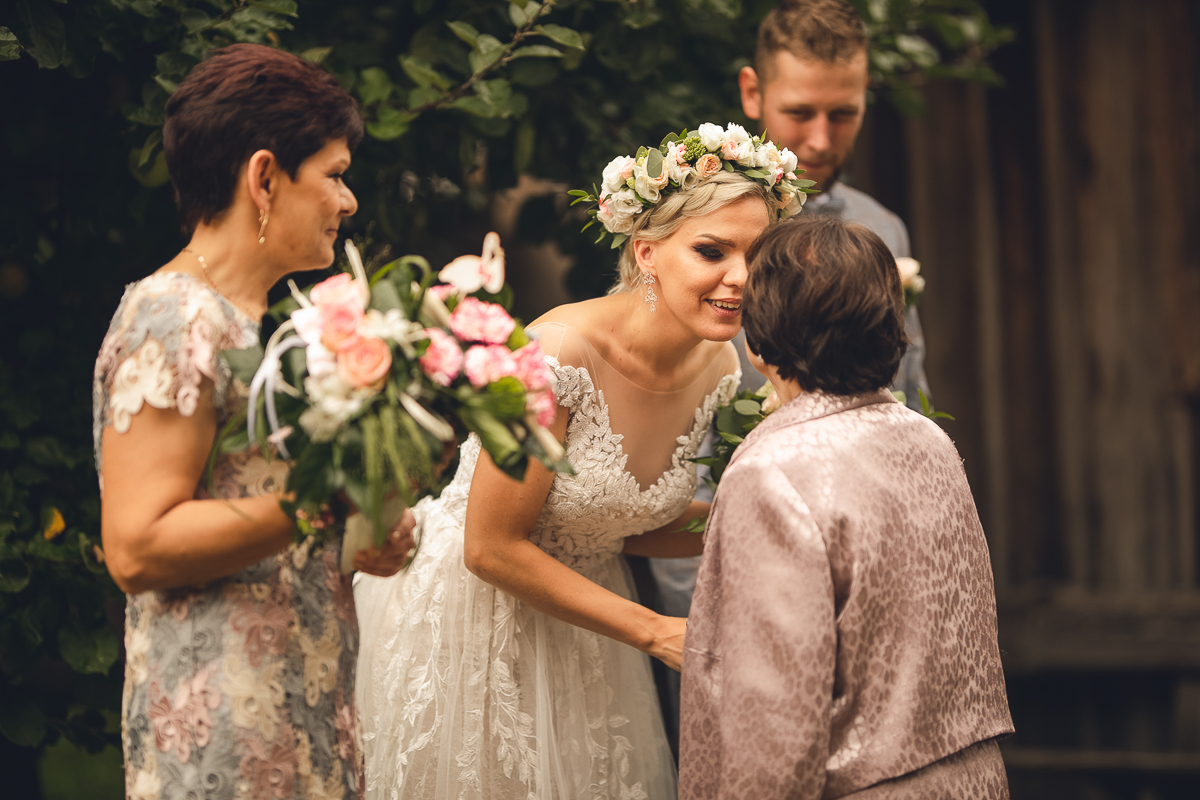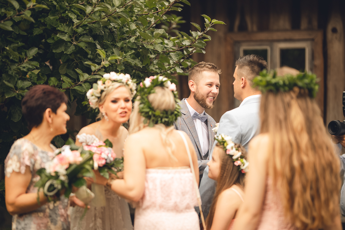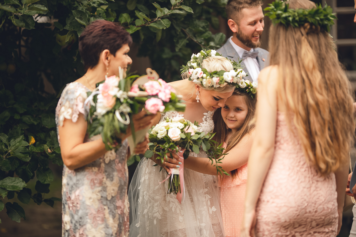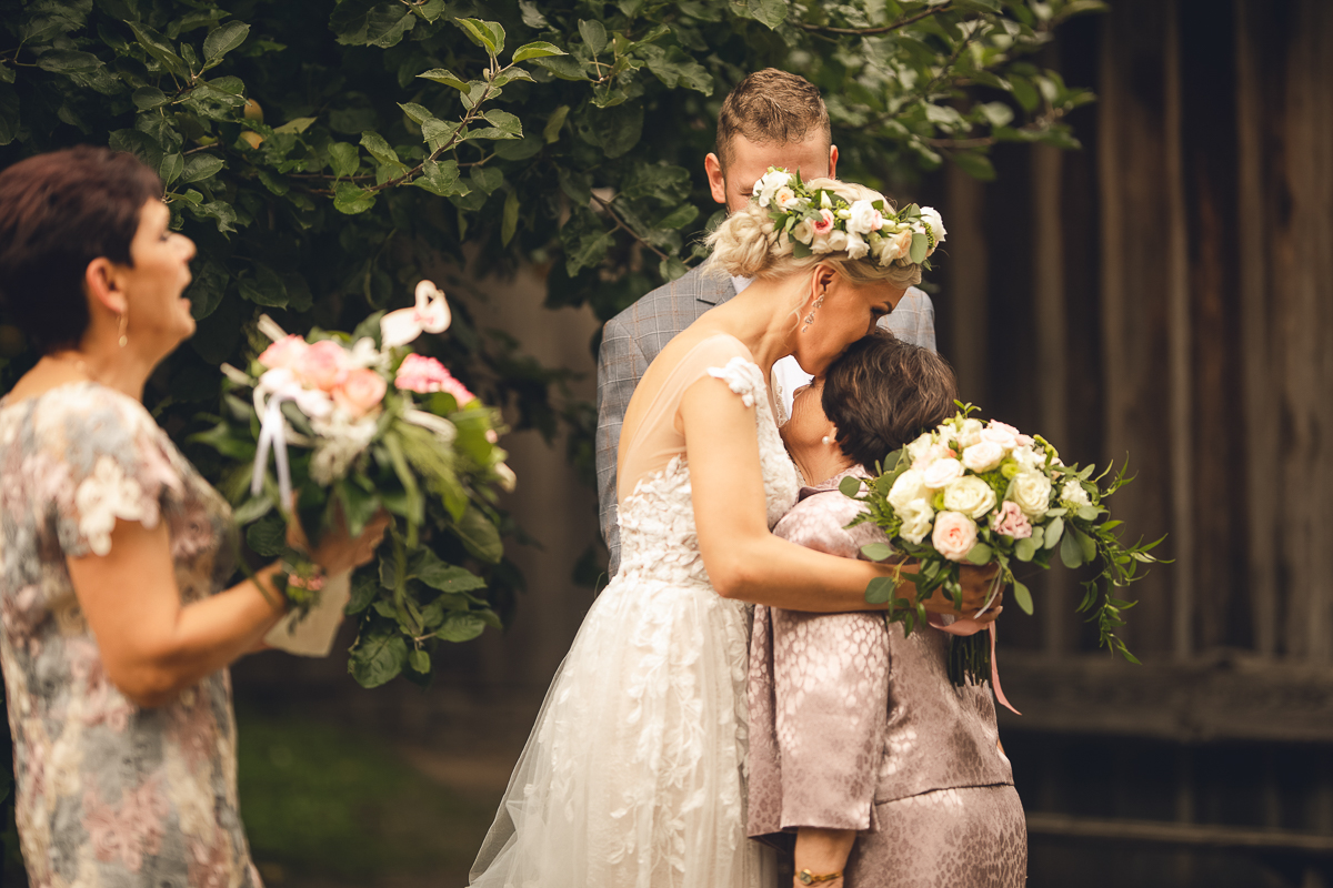 Emocje były niezwykłe, jak niezwykłe było otoczenie, pomimo deszczu, który zaczął padać, serca wszystkich były gorące, atmosfera niezwykle piękna, uroczysta, wszyscy mieli przed oczami Państwa Młodych, a my ten zaszczyt - uchwycenia tych najcudowniejszych momentów, łez wzruszenia, pierwszego pocałunku.