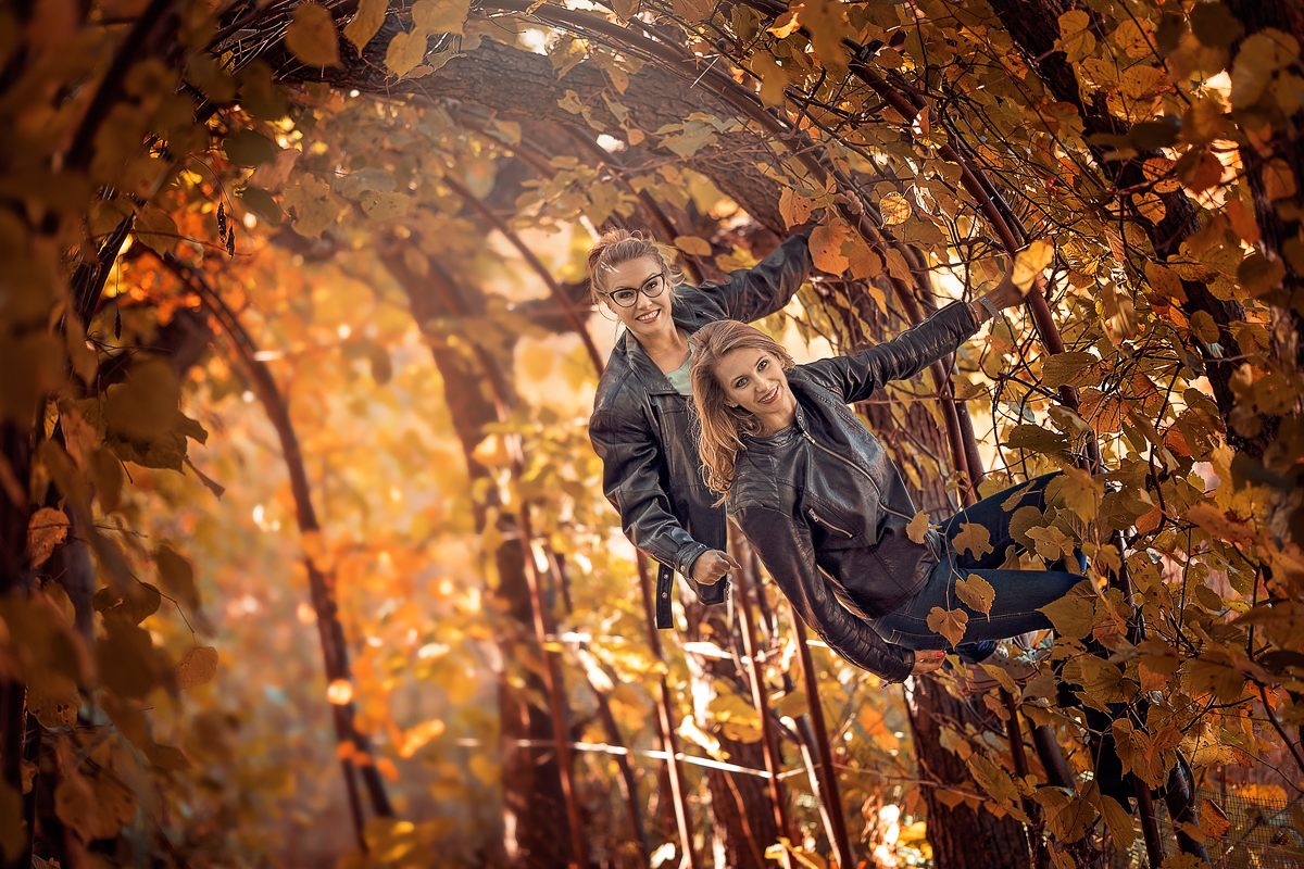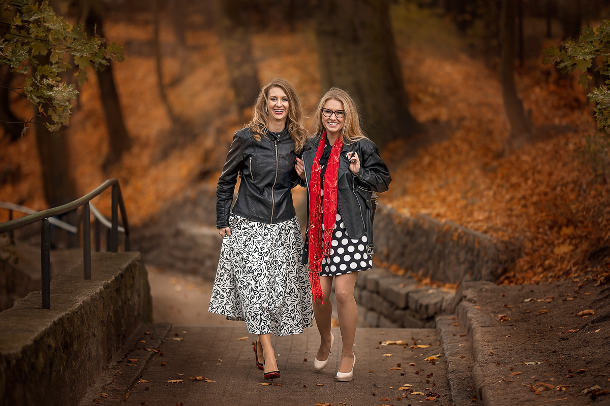Piękna, słoneczna i pewno ostatnia taka - październikowa niedziela. Sesja organizowana na szybko "Bo kuzynka Dorota powiedziała, że muszę, więc dzwonię" :) zupełnie nie planowane, kuśtykając z bolącym biodrem wymyśliłam najlepszy możliwy plener. Pod blokiem. Magda z Arturem również przyszli spacerkiem - z domu oddalonego o kilkaset metrów. Na wspólnym szaleństwie z fruwającymi liśćmi, ustawianiu i zabawie, godzina minęła jak z bicza strzelił. Dawno nie miałam okazji przebywać w towarzystwie tak sympatycznych, wyluzowanych i pozytywnie energetycznych ludzi. I cudnie, że udało się nam to zrealizować, ponieważ poniedziałek przywitał deszczem i szarym brzydkim niebem.