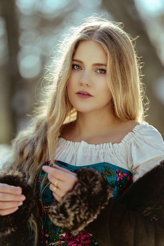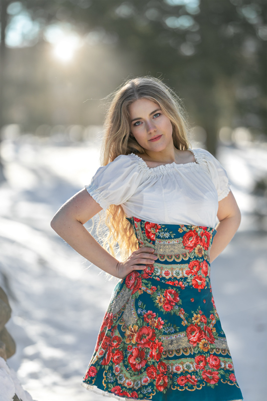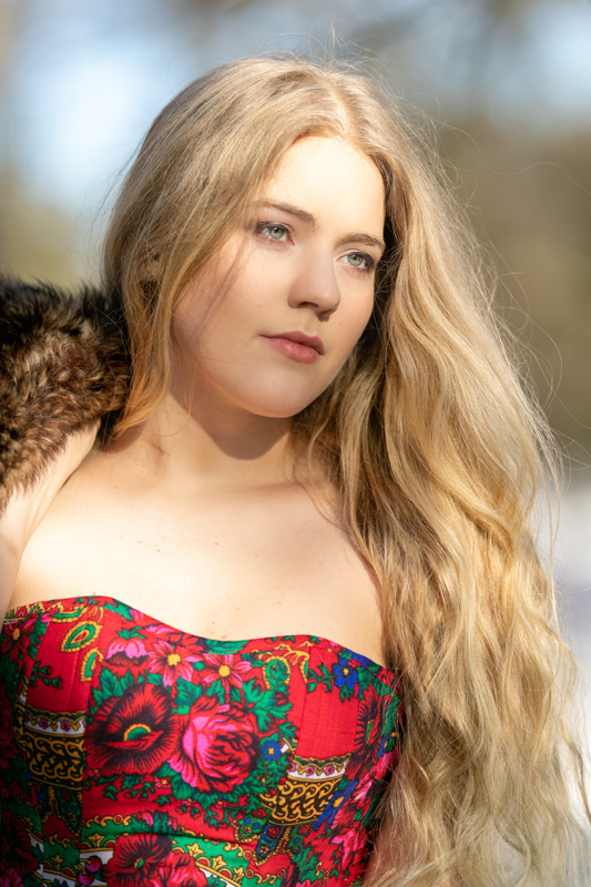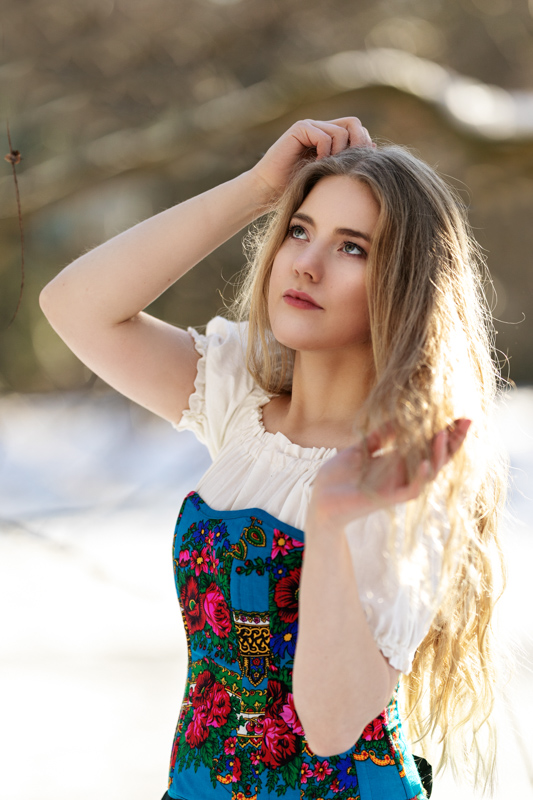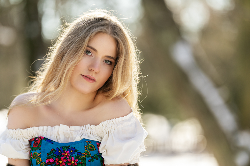 I tak w poniedziałek o 10:00 spotkałyśmy się w Parku Oliwskim, by zrobić kilka kolorowych, zimowych portretów folkowej Dominice.