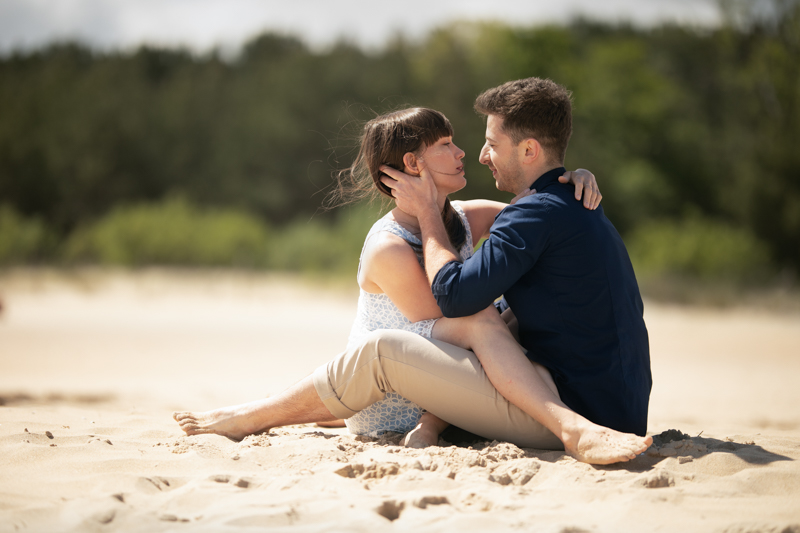 Natalia i Marek wygrali swoją sesję zaręczynową na Targach Weselnika w Gdyni, w styczniu tego roku. Powiedzieli nam, że zdecydowanie lepiej czują się na łonie natury i preferują sesję w lesie lub w parku. Małym bonusem było podejście nad morze i zrealizowanie kilku kadrów na plaży.
