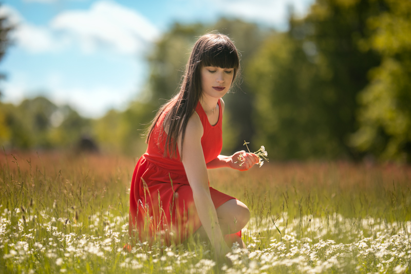 Początkowo myślałyśmy o naturalnej sesji lifestyle, ale gdy ujrzałam Magdę z falą rudych włosów za biodra, nie mogłam nie zrobić jej zdjęć w kwiatach, liściach, odbiciach w wodzie i naturalnych trawach.