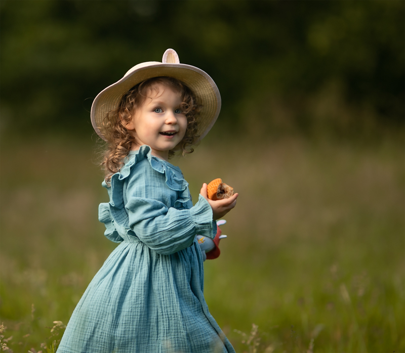 Nie znałam do tej pory żadnej Wandy (poza „Rybką zwaną Wandą” i małą bohaterką uroczej opowieści „Bułeczka”), już znam. Kasia i Tomasz byli niezwykle spięci. To była ich pierwsza wspólna sesja, a rozespana po drzemce w samochodzie dwulatka niekoniecznie miała ochotę na pozowanie. W pewnym momencie zorientowaliśmy się, że trzeba ją po prostu „łapać”. Dziewczynka świadoma obiektywów, natychmiast spuszczała głowę w dół, odwracała się, uciekała. Co sprawiało, że trudno było ją "złapać". Wandzia jest jednocześnie bardzo samodzielna i ma swoje zdanie. Zatem, jeśli nie ma na coś ochoty, to tego nie zrobi. Była najtrudniejszą modelką, z jaką przyszło nam pracować. Ale za to jakie efekty!