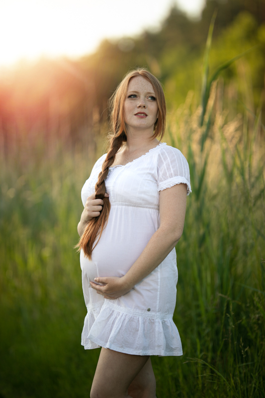 Z Magdą miałyśmy kontakt od dłuższego czasu, ale nie mogłyśmy się spotkać. Często jest tak, że najdalej jest nam do tych mieszkających najbliżej. Już w ubiegłym roku chciałam pokazać naturalną „rudą” urodę Magdy. I jakoś nam to nie wyszło. W tym roku, w styczniu podeszła do mnie na Targach Weselnika w Gdyni razem z narzeczonym. Okazało się, że u Magdy będzie trochę na odwrót i najpierw będzie Maleństwo. Wtedy Magda mogła jeszcze nie wiedzieć, że pod jej sercem rośnie Kornelka. Za to jest tego pewna już teraz i właśnie Magdę, przyszłą śliczną Mamę fotografowaliśmy niedawno w pięknym otoczeniu Parku Wejherowskiego.