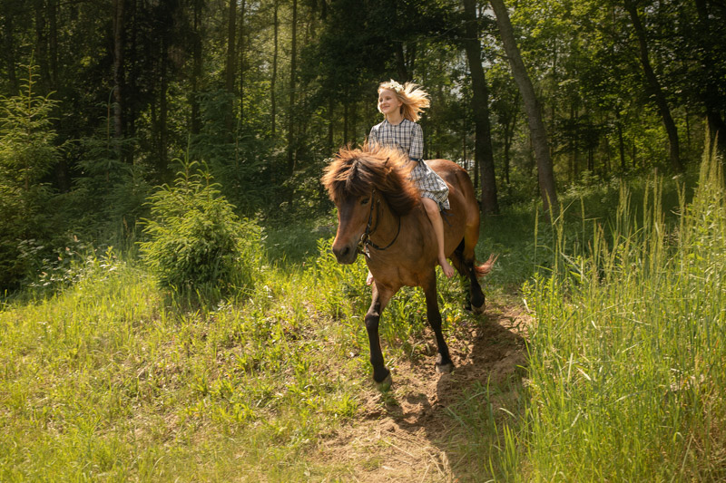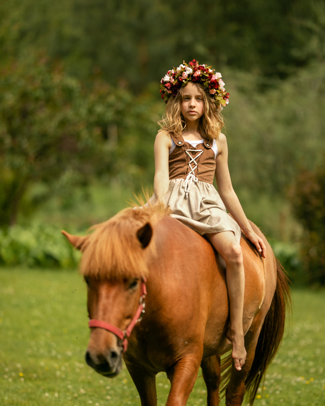 Pojechaliśmy na rekonesans. Oczy mi rozbłysły z zachwytu nad trójką dziewczynek (Julia, Natalka i Lilly), akrobatek, które na grzbietach Rudzika i Pięknej wyczyniają cuda. Ustaliliśmy szczegóły, stylizacje i zakres całej sesji, przekonując gorąco Rodziców do wspólnych zdjęć z dziewczynkami.