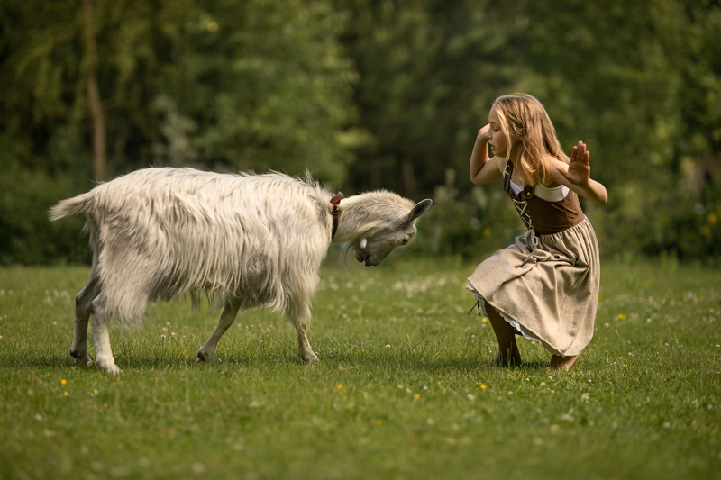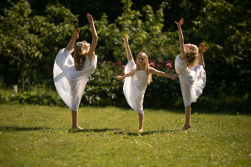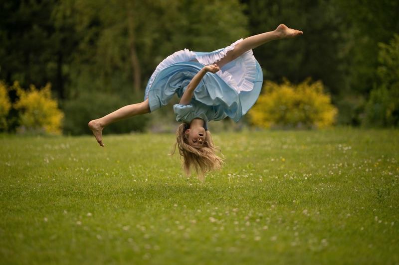 Po zdjęciach ze zwierzętami, dziewczynki zaprezentowały nam spektakl akrobatyczny. Patrzyliśmy z niedowierzaniem jak wykonują gwiazdy i szpagaty w powietrzu, tak lekko, jak gdyby jakakolwiek energia była do tego całkowicie zbędna. Ustaliliśmy wspólnie, które z figur będą na zdjęciach wyglądać świetnie, a które średnio, siostry decydowały wspólnie, zespołowo ustawiając figury i pozycje, a także prezentując akrobatykę indywidualnie.