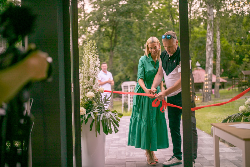 Właściciele - Kasia i Darek - przecinający uroczyście wstęgę otwarcia sali. Dziękujemy za zaproszenie do udziału w tym pięknym wydarzeniu.