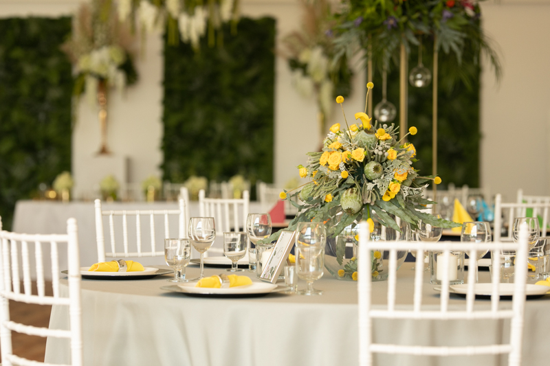 Osobiście najbardziej przypadł mi do gustu stół Państwa Młodych, oraz stół żółto złoty.