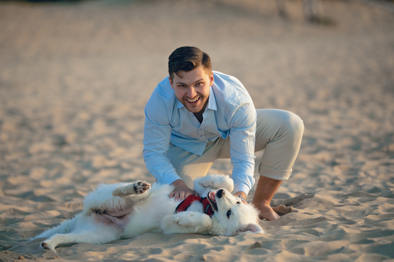 Zdarzało się nam gościć na sesjach zaręczynowych Waszych futrzastych przyjaciół. Koty, psy czy konie są zawsze wspaniałym uzupełnieniem Waszej relacji na zdjęciach, poza tym czasem fotografie to jedyna rzecz jaka po naszych braciach mniejszych zostaje po latach. Jeśli jednak decydujecie się na zabranie Waszego małego przyjaciela, zapewnijcie mu proszę opiekuna lub odbiór. To Wasza sesja i chcemy się skupiać przede wszystkim na Was, pies szybko się znudzi, będzie chciał biegać, bawić się, a jego zachowanie może Was rozpraszać w większym lub mniejszym stopniu.