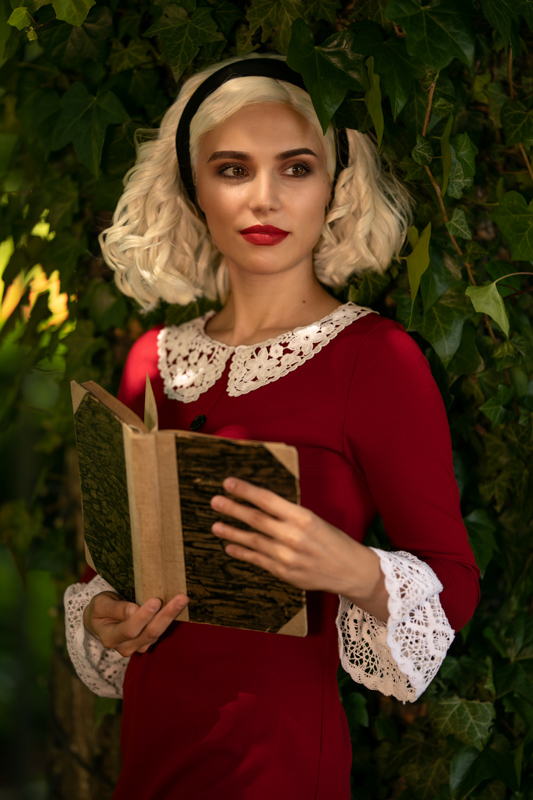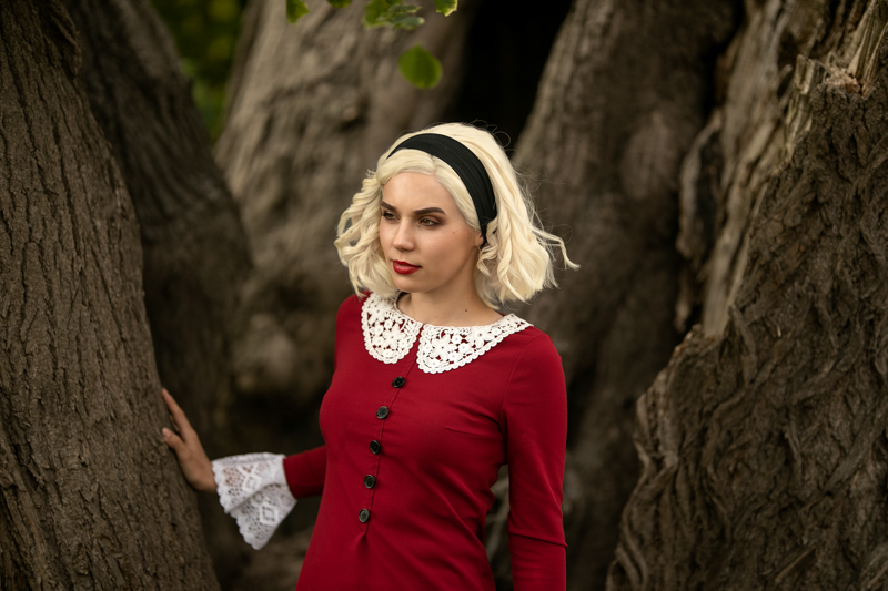 Nastoletnia Sabrina, w której żyłach płynie krew wiedźm i ludzi, próbuje łączyć życie zwykłej śmiertelniczki i czarownicy. I w taką Sabrinę wcieliła się Dominika pomiędzy jedną a drugą odsłoną Danny. Na Sabrinę mieliśmy naprawdę bardzo mało czasu, zwłaszcza, że trzeba było wziąć pod uwagę zlot klasyków i wakacje, a przejazd do Rzucewa zabiera około godziny. Miałam przygotowane idealne miejsce – wspaniałą willę z czasów wiktoriańskich na Brzeźnie. Niestety, okazało się że to dom opieki dziennej, zamknięty w weekendy. Musieliśmy na szybko improwizować i tak „podwórkiem” rodzinnego domu Sabriny stał się fronton Pałacu Opatów. Natomiast nieco magii uzyskaliśmy w ogrodach Zamku w Rzucewie i dziuplach starych lip na trasie do niego.