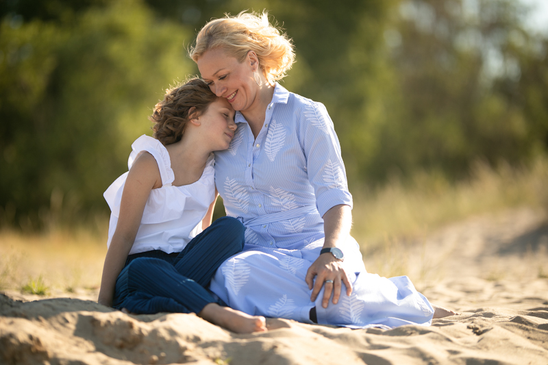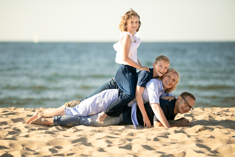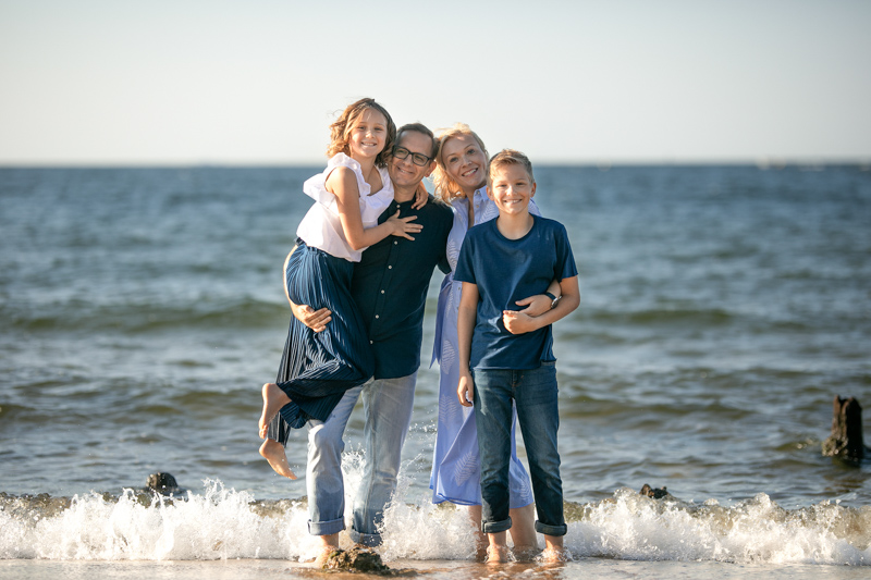 Pogoda była wymarzona. Błękitne niebo, błękitna woda, delikatna morska bryza, świeża zieleń liści i biało żółty piach. Karabaiby, cytując klasyka. Ewa prosiła o kilka pojedynczych portretów, ale poddała się również naszym zabawom integracyjnym, czego efektem były i kanapka, i naleśnik, i „pan fotograf”, a nawet „małpi gaj” w wykonaniu taty i syna. No i moja ulubiona „Misja” i bardzo emocjonalne opowieści rodzinne.