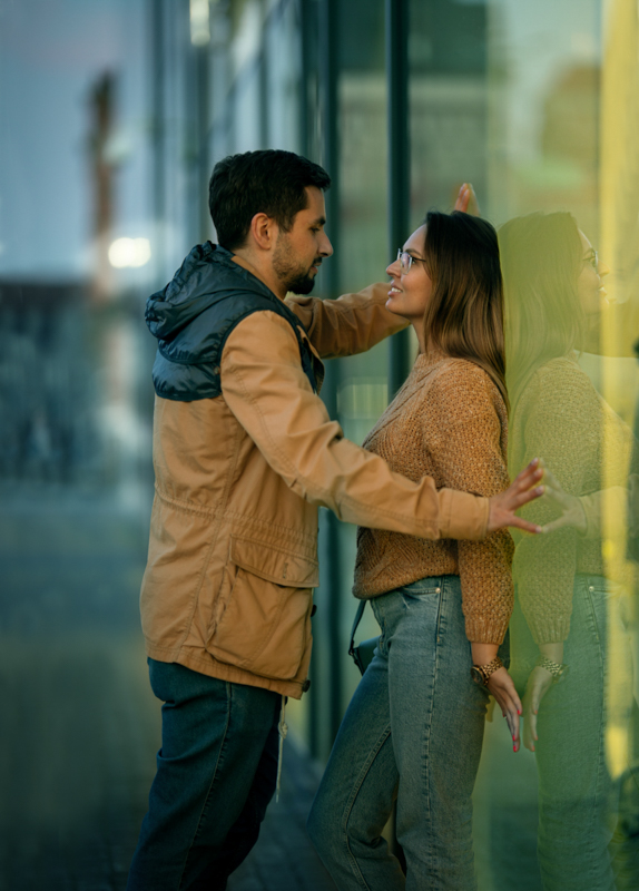 Od dłuższego czasu fascynują mnie szyby i odbicia w szybach. A zwłaszcza połączenie miękkości kobiecego ciała w połączeniu z chłodem i nowoczesną strukturą szklanych tafli, betonu i metalu.