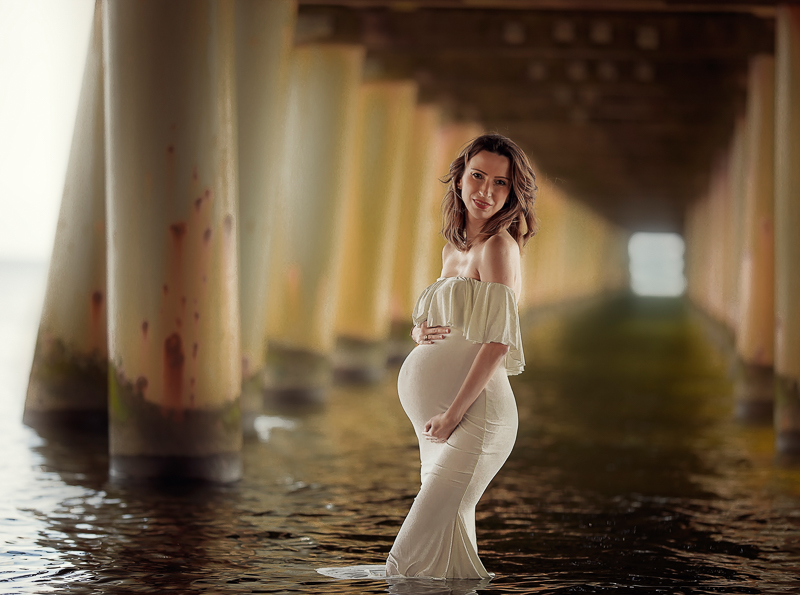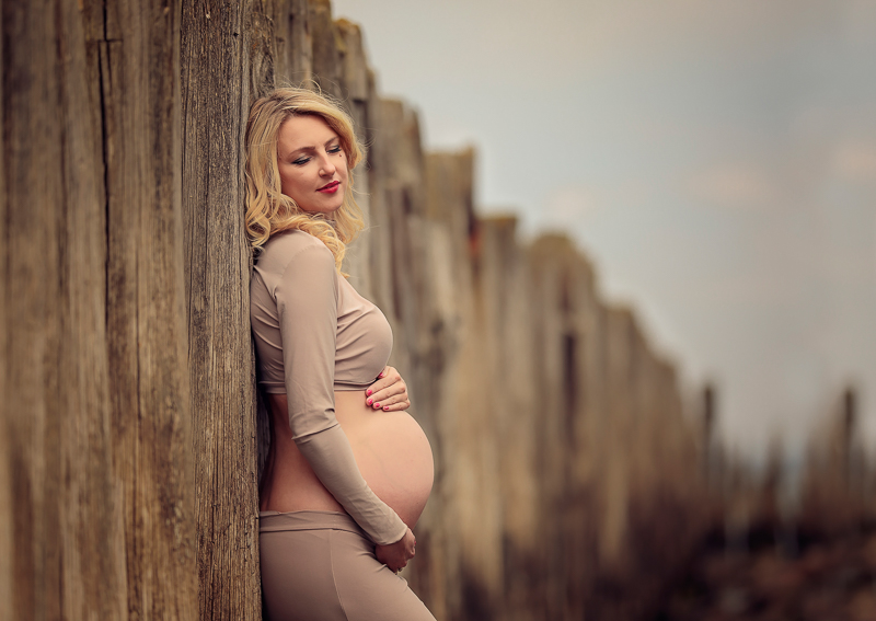 Przyszła piękna Mama, również ma wykonany profesjonalny makijaż. Zwróć jednak uwagę na uchwycenie całej sylwetki Modelki i odległość postaci od aparatu. Zatem makijaż chociaż był piękny, nie jest wystarczająco widoczny na tym przynajmniej zdjęciu.