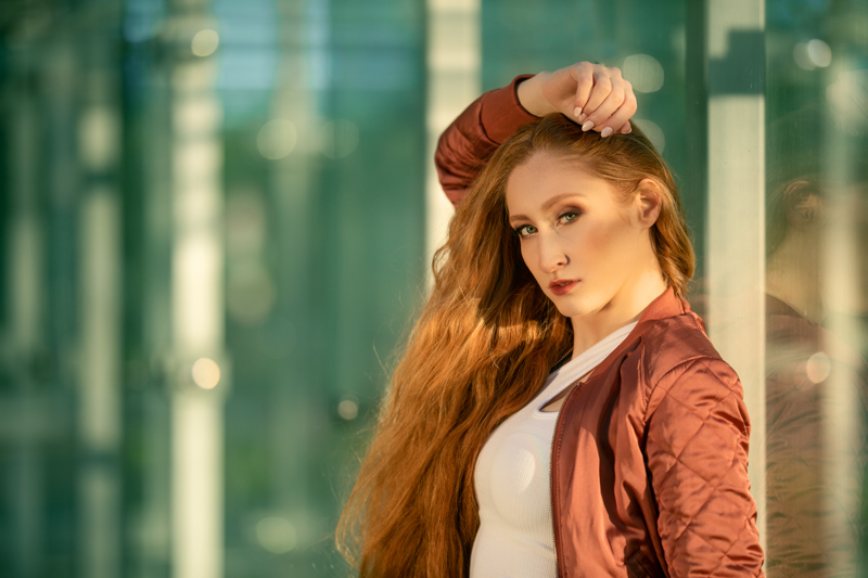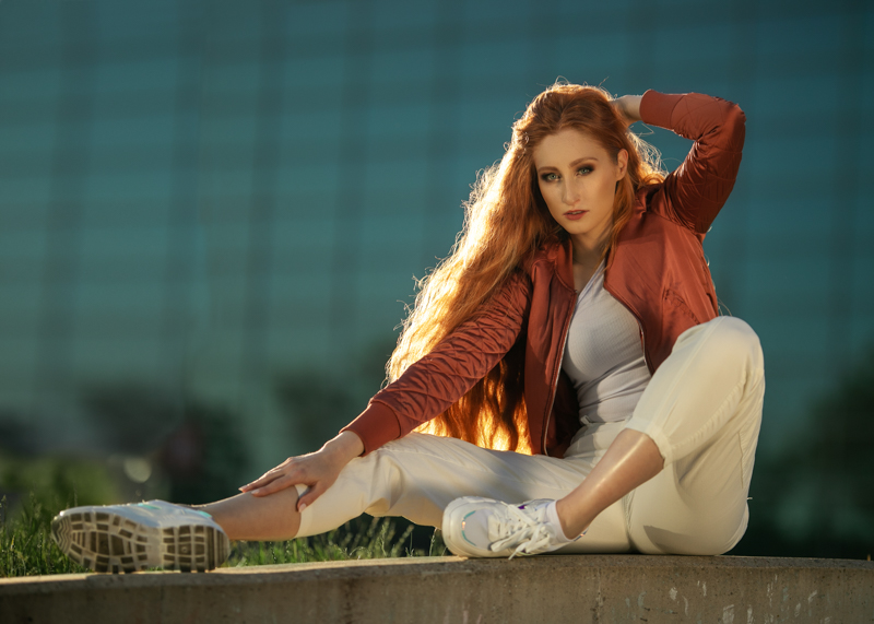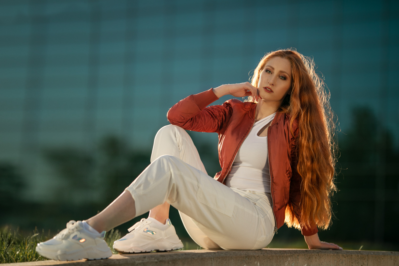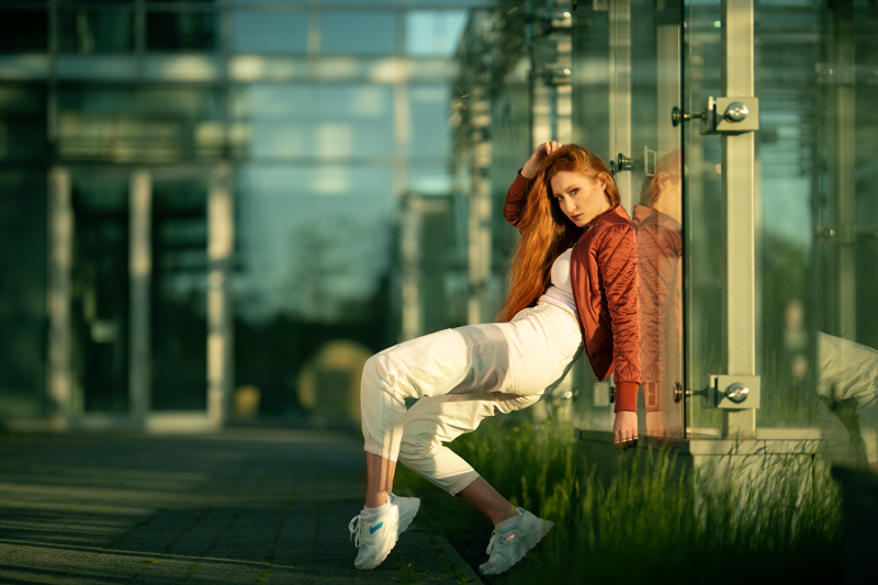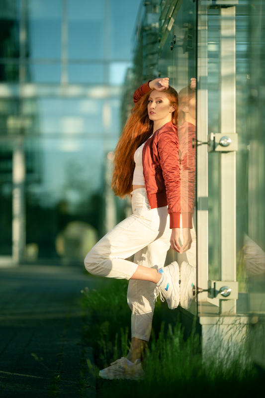 Do ognistej burzy włosów Ani, pasował zachód słońca i szmaragdy szyb Parku Technologicznego w Gdyni. Zerknijcie poniżej na efekty. tej kompozycji światła i kolorów.