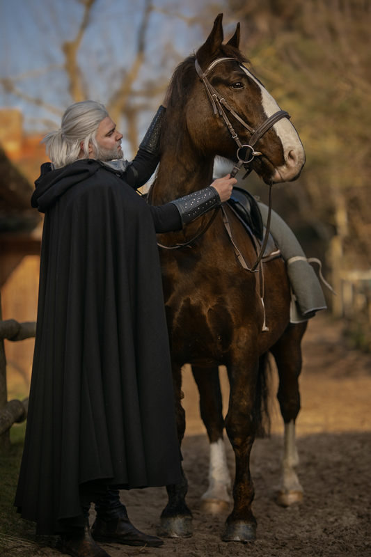 Na zdjęciach najlepszy z najlepszych Wiedźmin - silvercos w zbroi z serii Netflixa, pelerynie przepięknie uszytej przez Krok Designer dosiadający majestatycznego Lidera (Płotka) ze stajni Restauracja Tabun w Otominie oraz cudowna, zachwycająca i absolutnie najlepsza Yenn, czyli zjawiskowo piękna Yennefer belovedcosplay